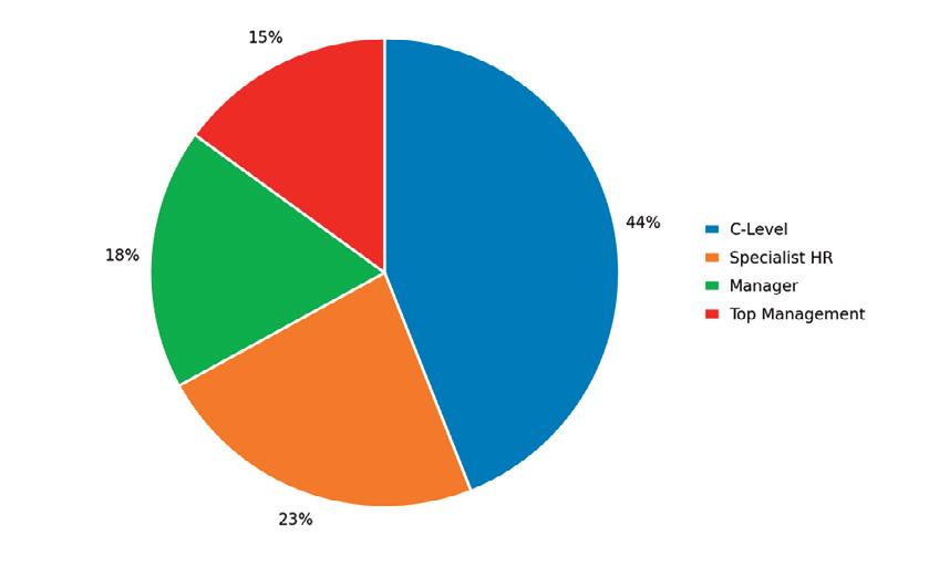 Il pubblico in presenza del Forum HR è composto in larga parte da profili decisionali: C-Level (44%), Manager (18%) e Top Management (15%) rappresentano complessivamente il 77% dei partecipanti. Il restante 23% è composto da Specialist HR.