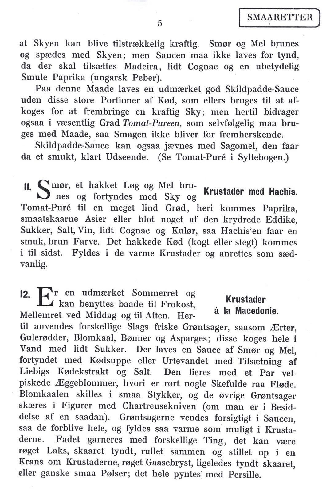 Til Krustader, Rouletter, Kroketter, Tarteletter, Piroger, Rissoller, Postejer og Timbal’er …