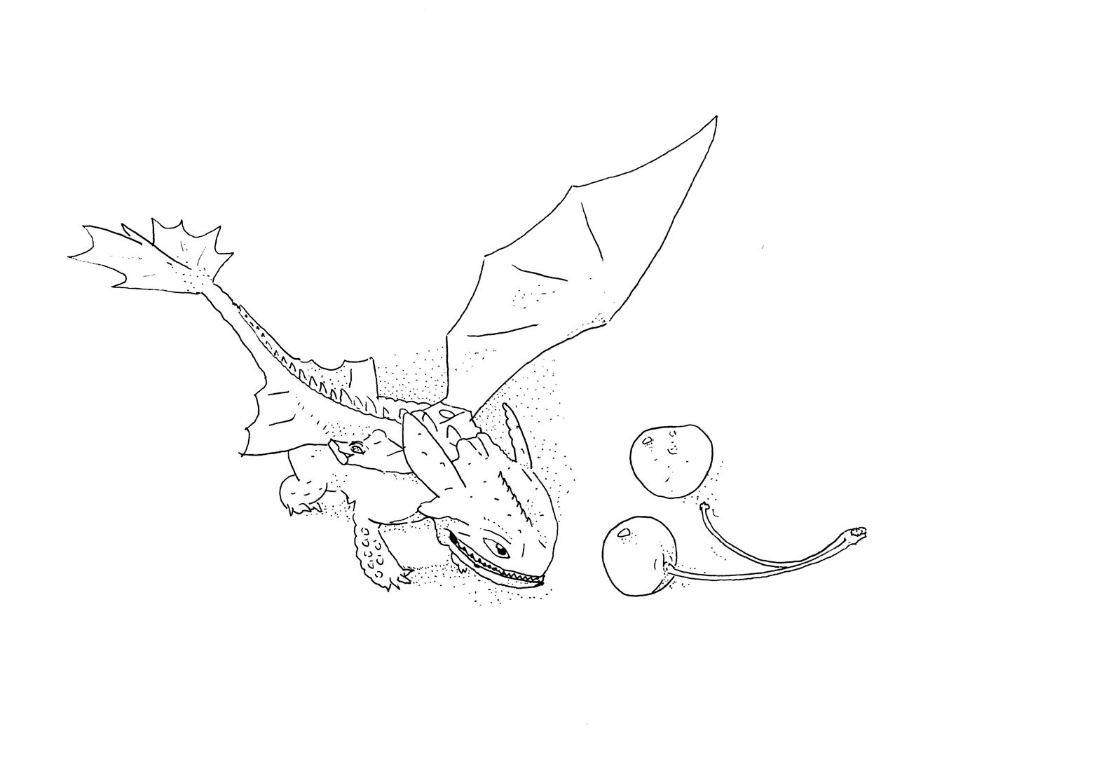 Jeg kigger om til hende en gang imellem i bakspejlet. Spørger om hun vil have en brikjuice, og hun ryster på hovedet uden at kigge op. Hun sidder og fodrer sin drage med nogle kirsebær. Hun sidder fordybet i legen og hvisker et uforståeligt sprog ned til figuren.