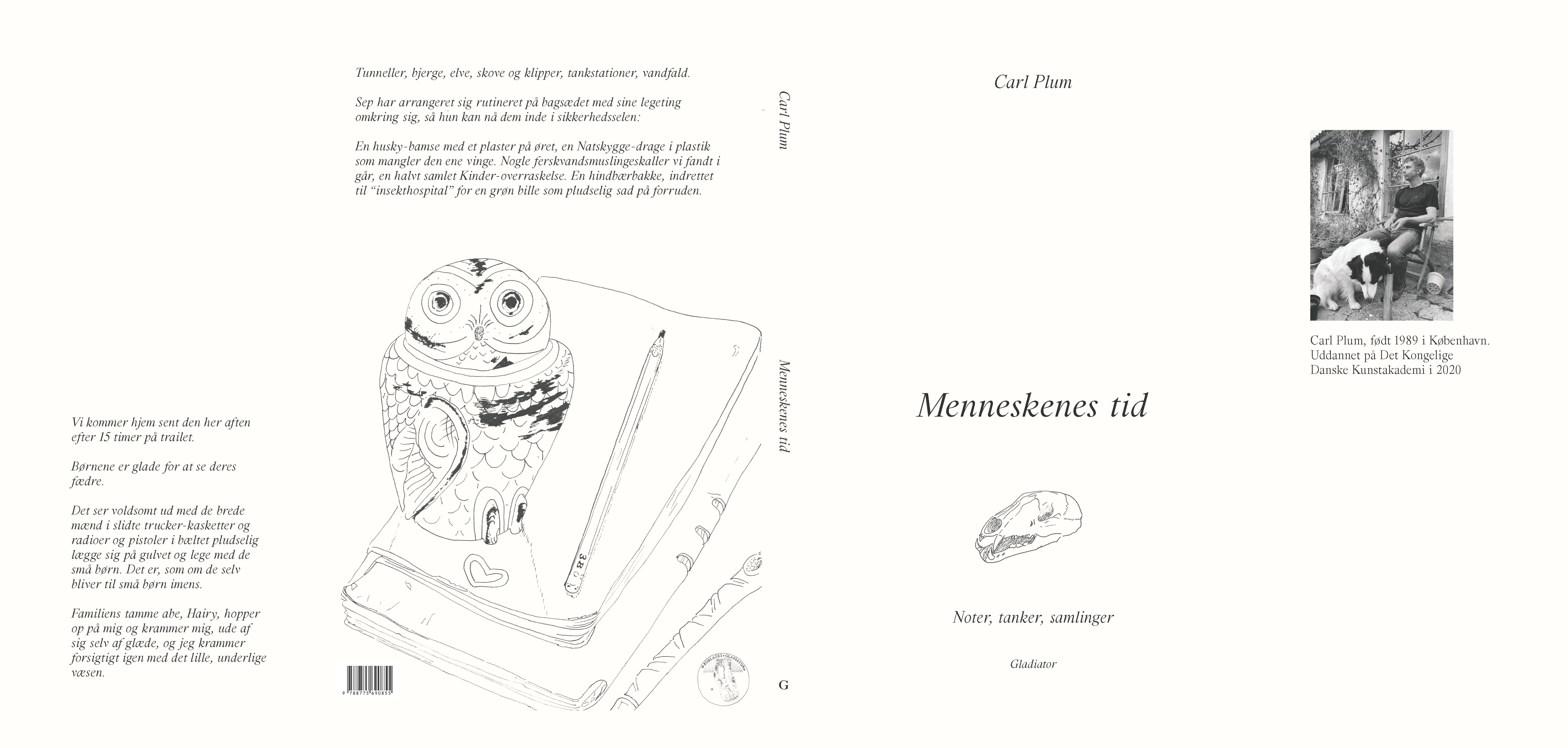 En husky-bamse med et plaster på øret, en Natskyggedrage i plastik som mangler den ene vinge. Nogle ferskvandsmuslingeskaller vi fandt i går, en halvt samlet Kinder-overraskelse. En hindbærbakke, indrettet til “insekthospital” for en grøn bille som pludselig sad på forruden.