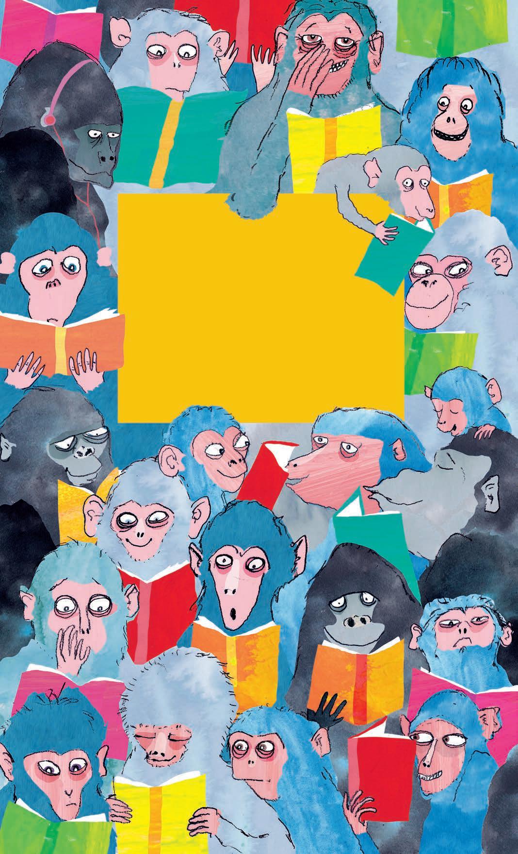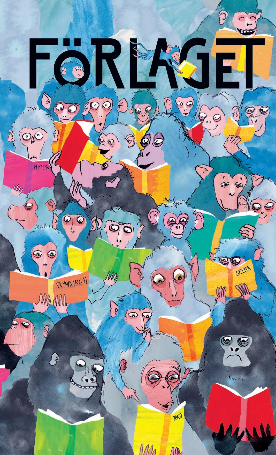 Bilderbokskonstnären Linda Bondestam , som i höst är aktuell med bilderboken Konkarongen, har skapat katalogens omslag. Bilden föreställer ett gäng apor som fått tag på Förlagets höstutgivning. Linda tänkte på allt det fantastiska som litteratur är och tecknade så att pennan glödde för att förmedla känslan av hur det är att vara uppslukad av en riktigt bra bok. Vem som läser vad får var och en bestämma själv.