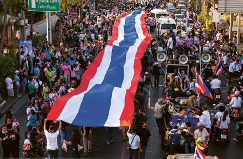 litisk manøvrerte Bangkok seg inn under Washingtons paraply, og innenrikspolitisk legitimerte antikommunismen en hardhendt militær kontroll. Blodige skytinger av studenter i 1973 og 1976 viste at frykten for kommunismen ble delt av både hæren og kongefamilien. Etter hvert som Sovjetunionen gikk i oppløsning, ble den kommunistiske trusselen erstattet av frykt for massenes demokratiske krav – noe som kulminerte med Thaksins velferdsog mobiliseringspolitikk på begynnelsen av 2000-tallet, som eliten så på som et frontalangrep på en politisk struktur der de samme politiske aktørene ble valgt igjen og igjen.