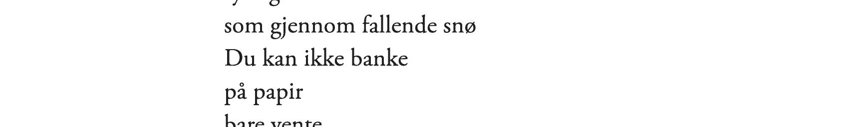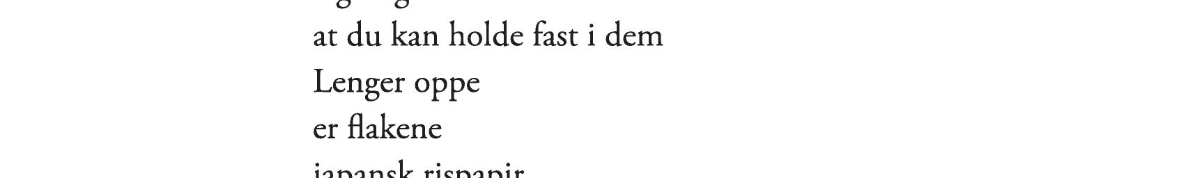 «Jeg leser og leser og leser diktene. Om igjen og om igjen. Hver gang gir de nye bilder i hodet. Det er jo en roman, dette! Historien om et helt liv. Eller et halvt. Uendelig vakkert, og innimellom ufattelig vondt.»