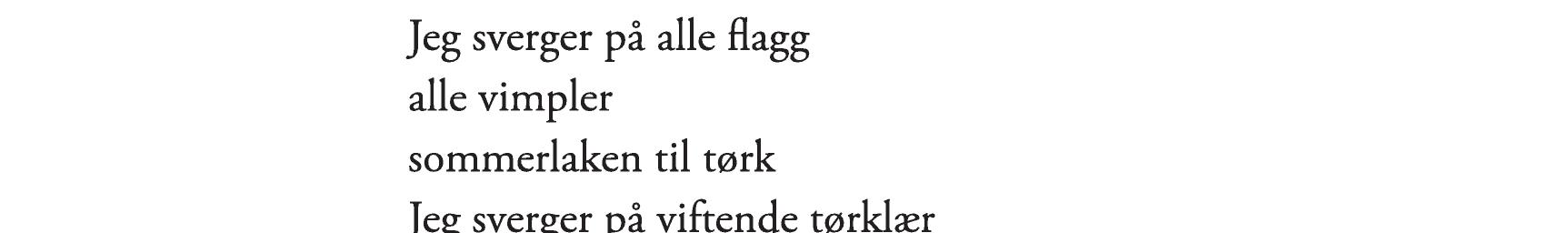 Jeg sverger på alle flagg, alle vimpler, sommerlaken til tørk. Jeg sverger, jeg vil skrive.