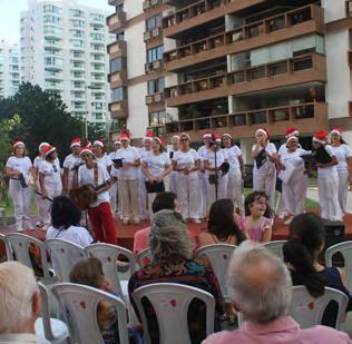 Para completar o clima natalino, o Coral Barramares realizou uma apresentação lindíssima, encantando o público com músicas que aqueceram os corações e reforçaram o sentimento de união e esperança. As vozes do coral ecoaram pelo condomínio, criando uma atmosfera acolhedora e emocionante.