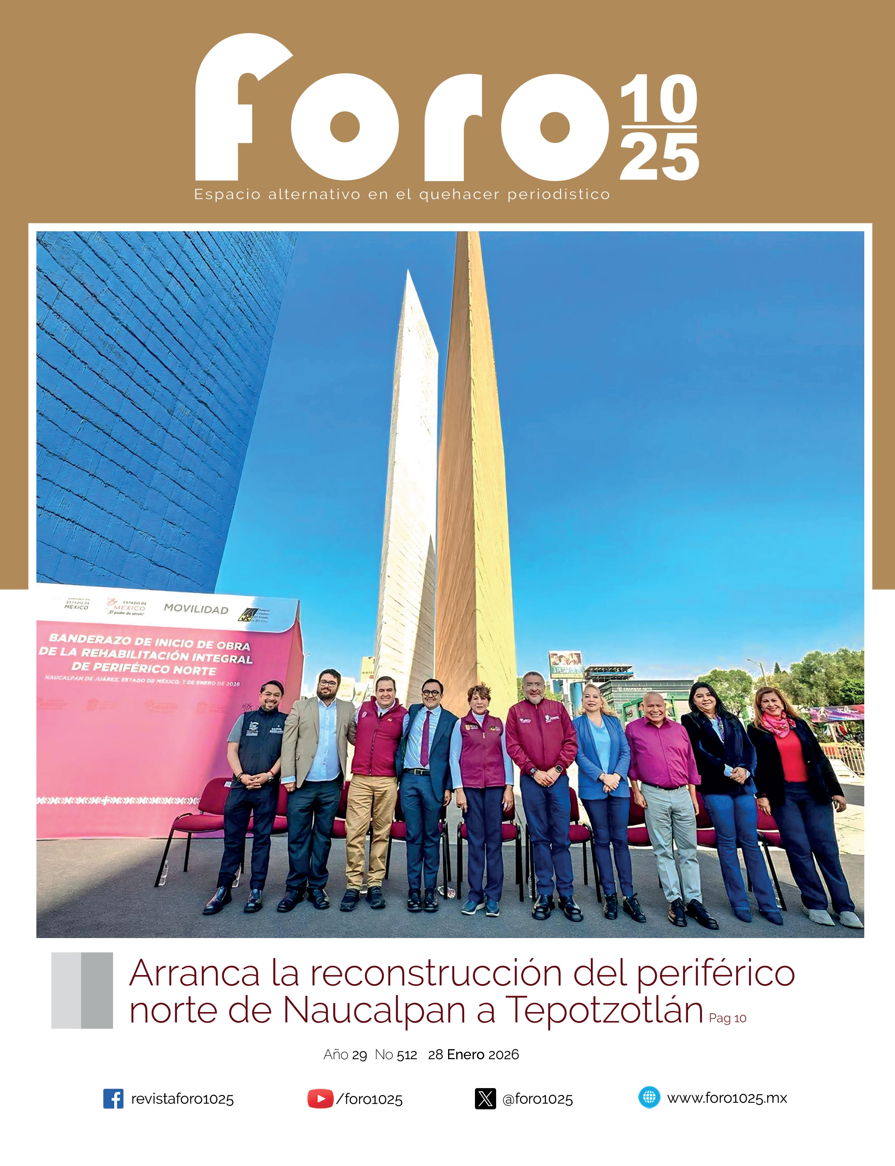 FORO 10/25 ESPACIO ALTERNATIVO EN EL QUEHACER PERIODÍSTICO es una publicación mensual, esta casa editorial cuenta con sus títulos y registros otorgados por las instancias correspondientes de la Secretaría de Gobernación y de Educación Pública. Número de Certifcación de Licitud de Título 9994. Número de Certifcación de Licitud de Contenido 7049. Reserva de Derechos al Uso Exclusivo Número 04-2015-042912532100-102.