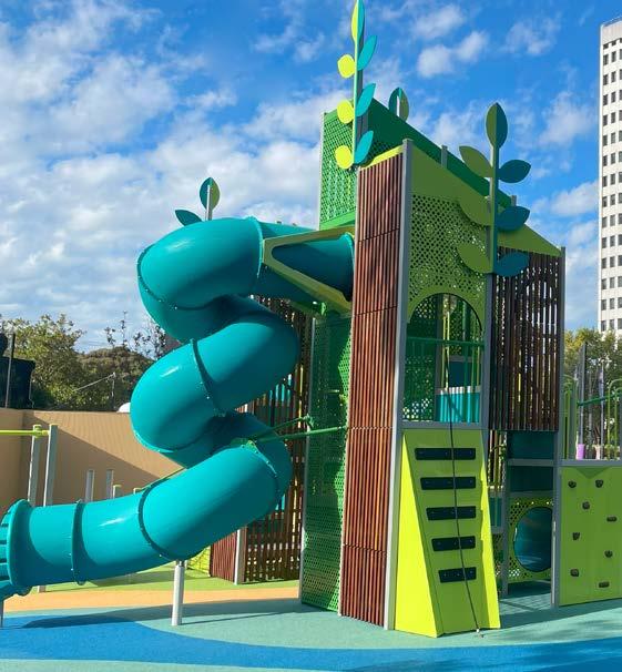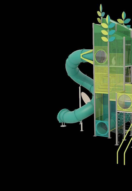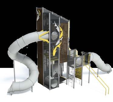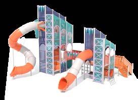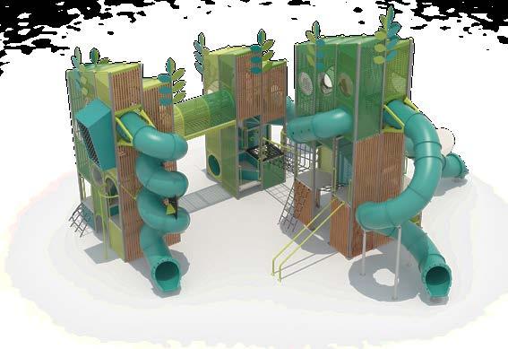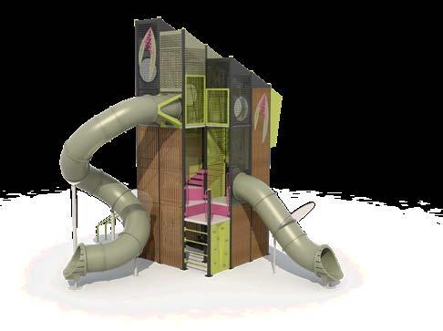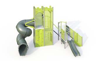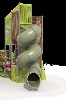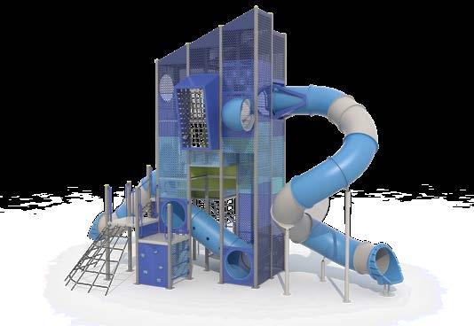 Climbing nets, rock walls, ladders, tunnels, play panels and hammocks are just some of the activities offered at ground level. Transition ramps, rope elevators, spaghetti mazes and talk tubes are more of the activities provided on the way up. And of course, there’s an array of spectacular slides to whizz down!