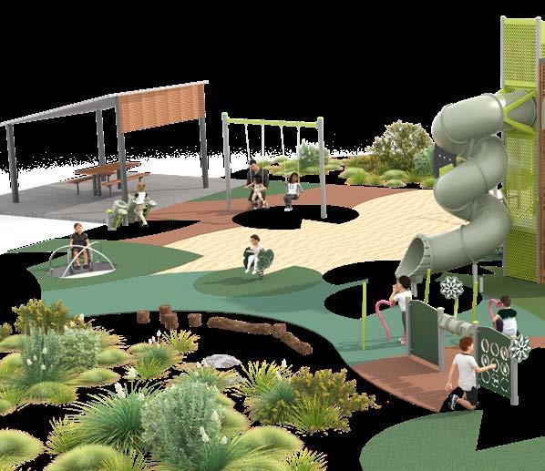 Low-level accessible hangout zones that promote balance, co-ordination and socialisation.