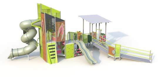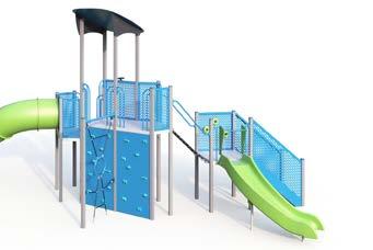 Encourages integration through an easy access ramp which allows all kids to play throughout the unit.