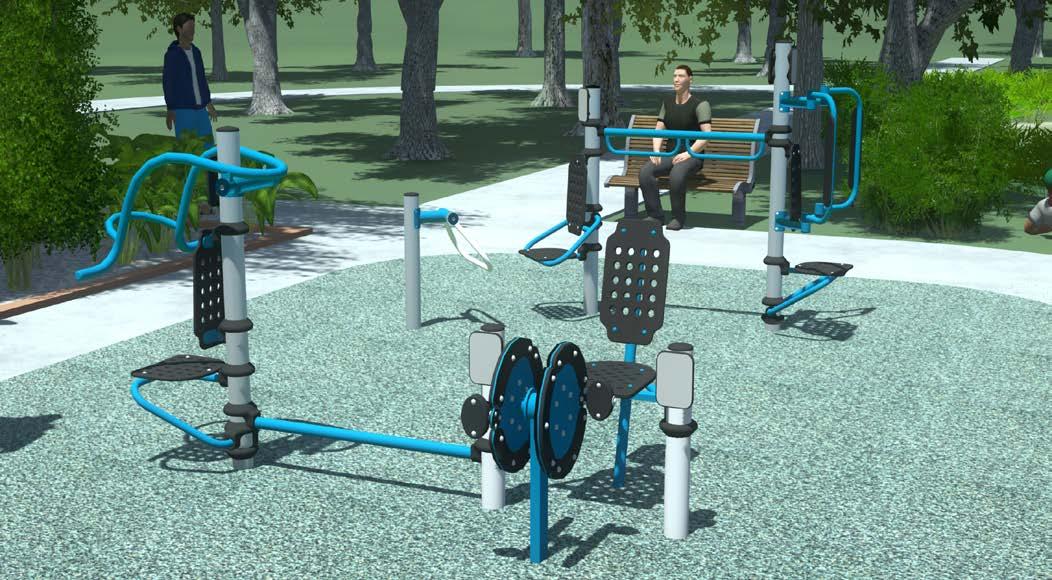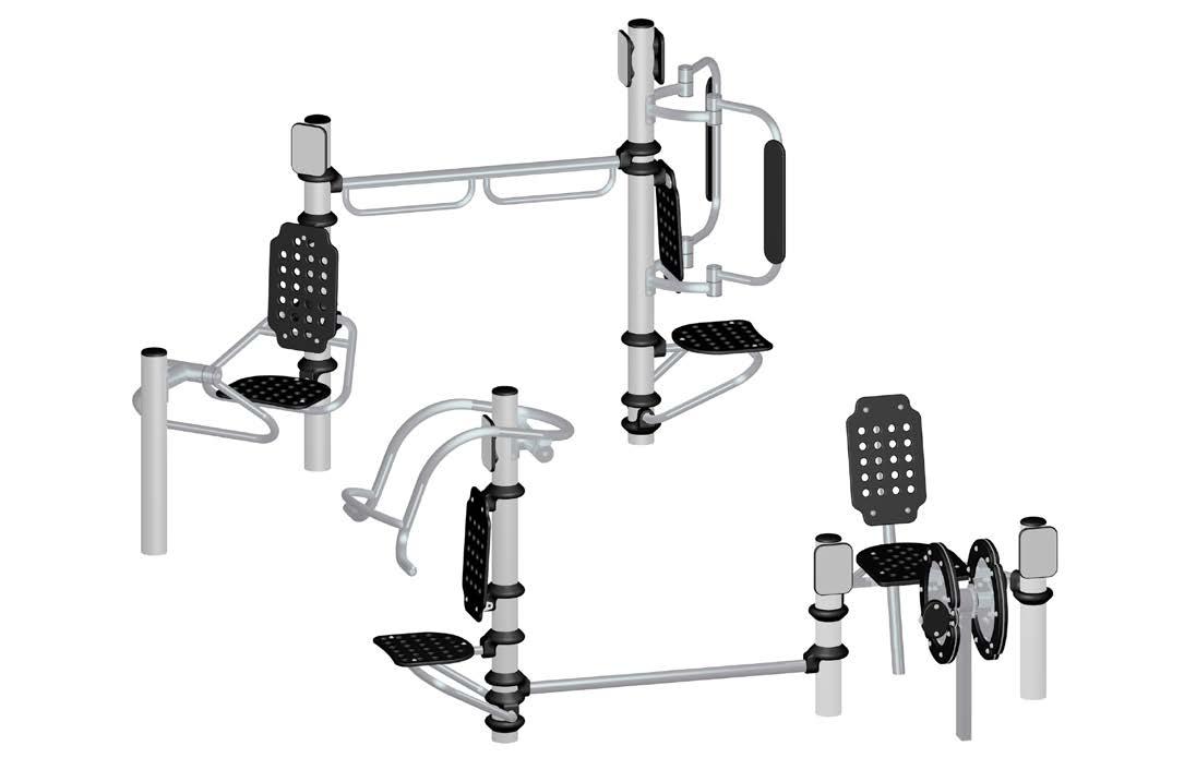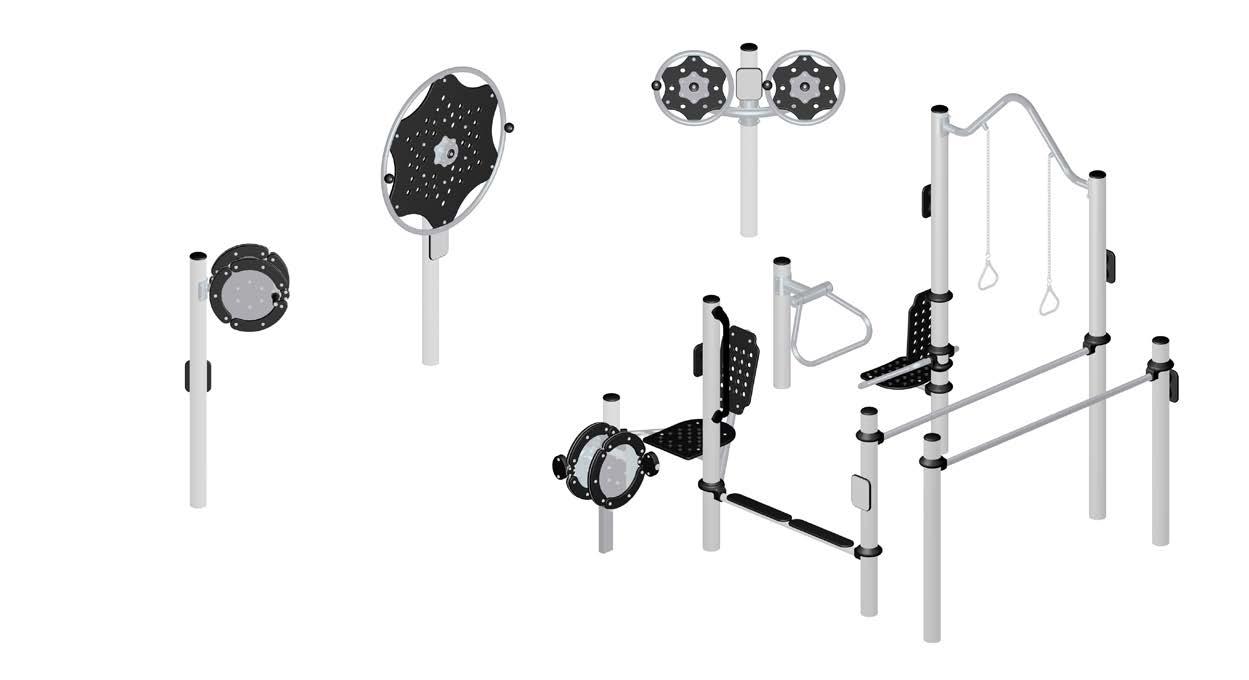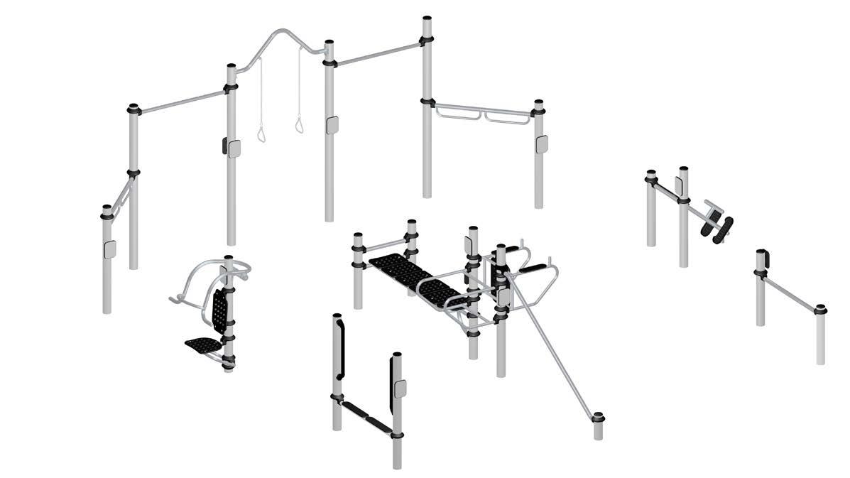 The range consists of products with both static and moving parts, making it possible to cater for practically any fitness level. Many of the components can be joined together to maximise the number of fitness activities for the space available, creating endless design options.