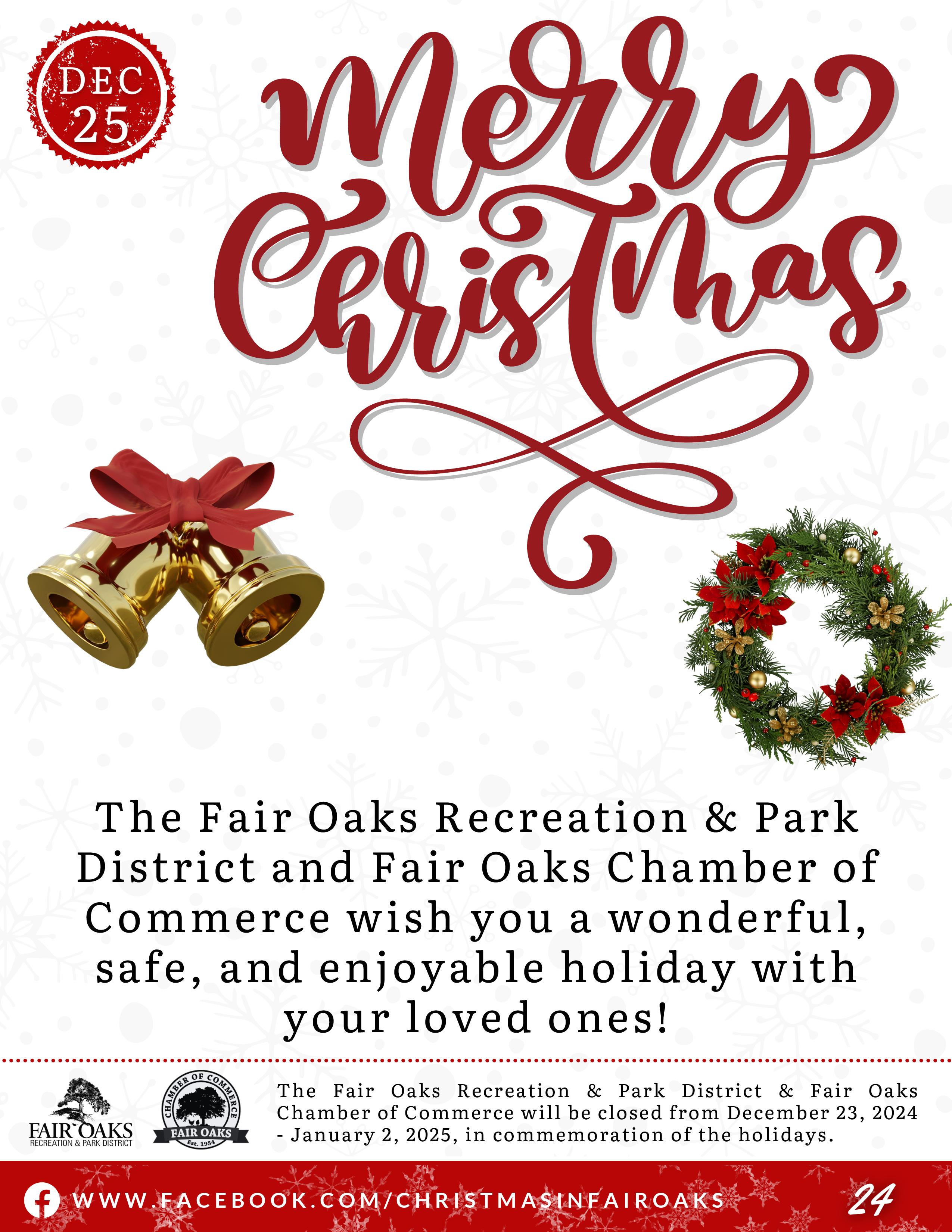 All of us here at the Fair Oaks Recreation & Park District and Fair Oaks Chamber of Commerce would like to wish you a Merry Christmas, Happy Holidays, and a Rockin' New Year!