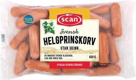 Helgprinskorv Scan. 600 g. Jfr pris 66:67/kg. Max 2 köp/hushåll.