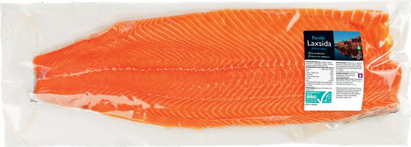 Laxsida ASC Pacific. Ca 1200 g. Kyld. Jfr pris 139:00/kg. Max 2 köp/hushåll.