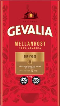Kaffe Gevalia. Välj mellan olika sorters brygg, press och kokkaffe. Gäller ej Ecologico mellanrost & Koffeinfri mellanrost. 450 g.