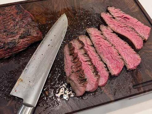 NOTE: make sure you’re slicing against the grain – it’s very important with a flank or it can become pretty chewy