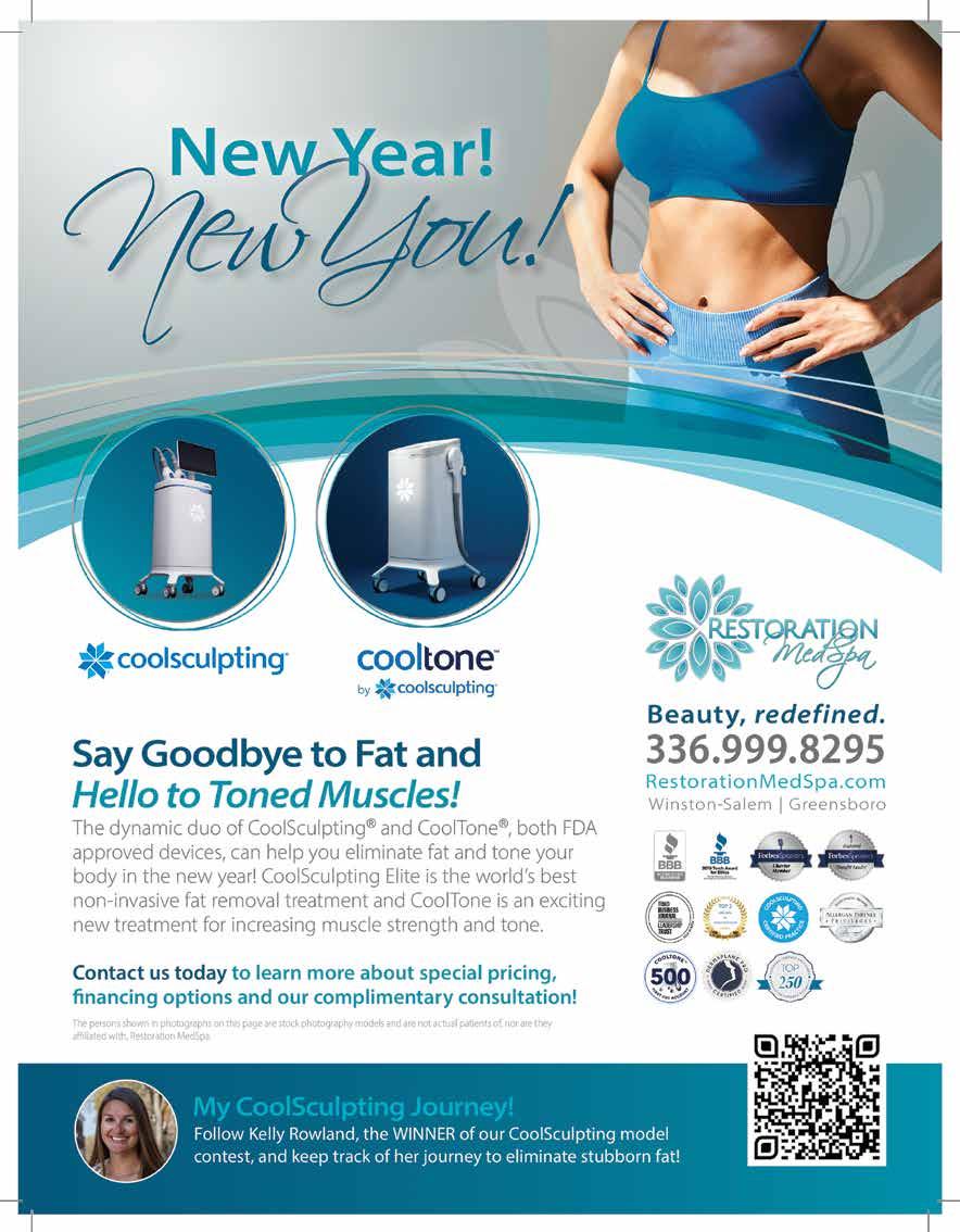 January 2023 | 95 Serving Forsyth County Families for Over 40 Years TRI • Road • Mountain • Comfort • Hybrids • BMX • Kids Bicycles Tricycles • Scooters • Bob Strollers • Unicycles 336.766.5564 • www.clemmonsbicycle.com 2703 Lewisville-Clemmons Rd, Clemmons, NC 1 YEAR FREE SERVICES WITH BICYCLE PURCHASE. Crushing new goals for a great new year. getwoshbox.com 3608 Clemmons Rd. Clemmons, NC 27012 • 336-712-3155 133 Oakwood Dr. Winston-Salem, NC 27103 • 336-725-3773 5061 University Parkway Winston-Salem, NC 27106 • 336-602-2860 Take advantage of our wash & fold service and delivery service. Follow us @forsythmags