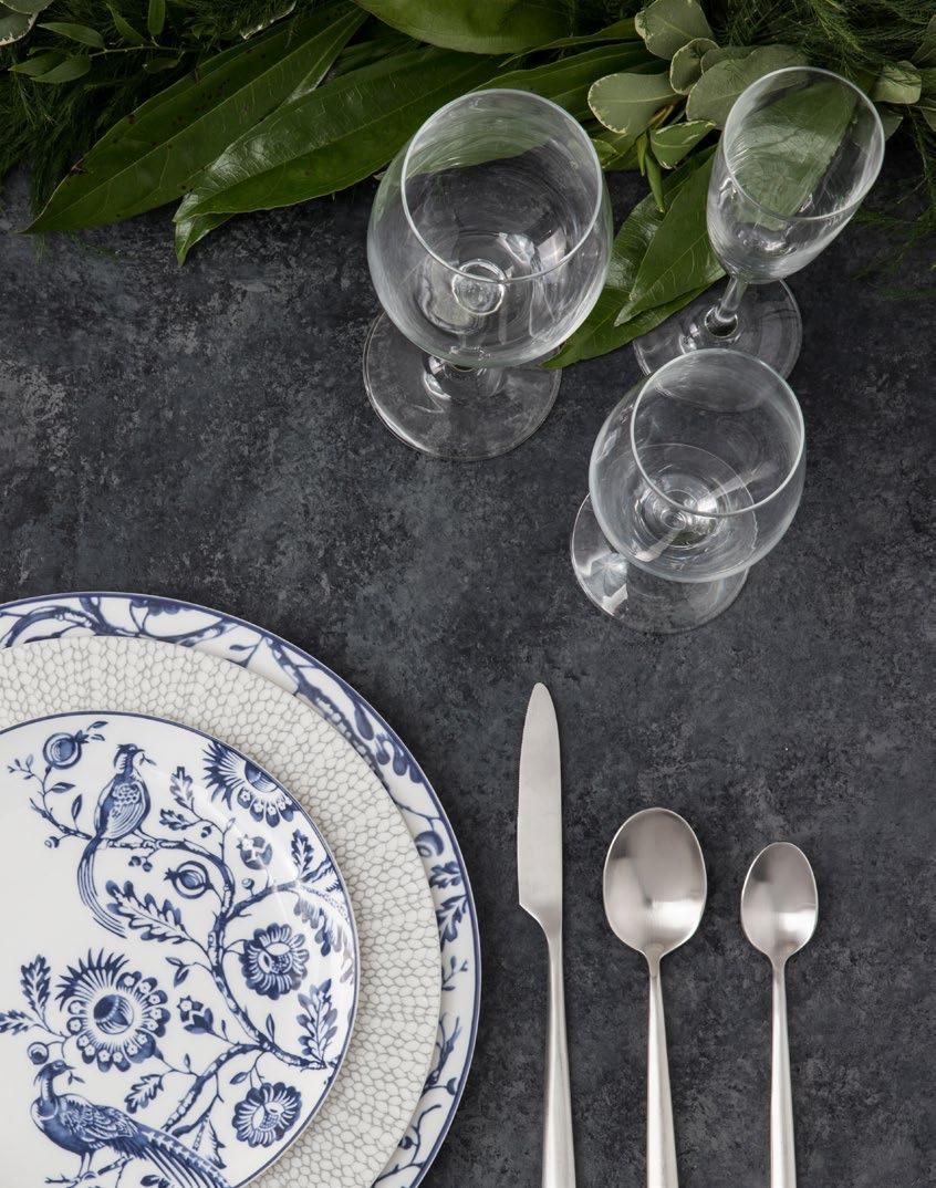 dinnerware: camellia flatware: velo grey + brushed, velo brushed glassware: pure