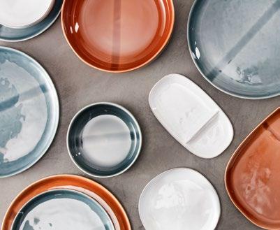 The simple yet elegant silhouette of Svelte in Terracotta brings vibrant color to the table. Pair with Stone and Deep Blue for a contemporary palette as memorable as your menu.