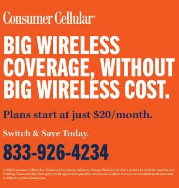We offer the same reliable, nationwide coverage as the largest carriers. No long-term contract, no hidden fees and activation is free. All plans feature unlimited talk and text, starting at just $20/month. For more information, call 1-833-926-4234. (MB)