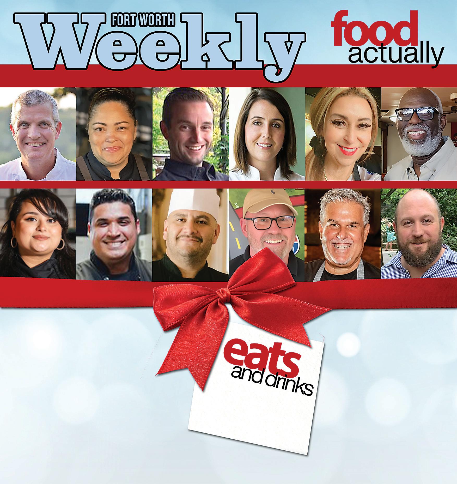 Inspired by the 2003 rom-com Love Actually, this week’s cover art by Fort Worth Weekly Art Director Ryan Burger features (from left to right) Chefs Jon Bonnell (Bonnell’s Fine Texas Cuisine, Waters, Buffalo Bros), Wendy Felix (Café Americana), Marcus Paslay (Clay Pigeon), Molly McCook (Ellerbe Fine Foods), Andrew “Drew” Thomas (Drew’s Place), Mary Patino Perez (Enchiladas Ole), Irene Garza (iL Modo), Juan Rodgriguez (Magdalena’s), David Pachero (Restaurant506), Tom Jones (Tom’s Burgers & Grill), Richard Sandoval (Toro Toro), and restaurateur Rex Benson (Rex’s Bar & Grill, Ol’ South). Photos are courtesy of Downtown Arlington Inc., E.R. Bills, Ellerbe Fine Foods, Facebook, Instagram, Visit Fort Worth, and Working Title Films.
