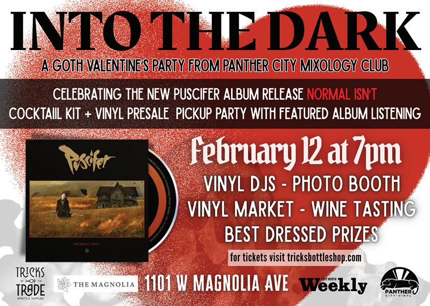 The Magnolia will go goth for a night as part of Panther City MIXologist Club #2, a cocktailand-vinyl pairing collab. BY STEVE STEWARD