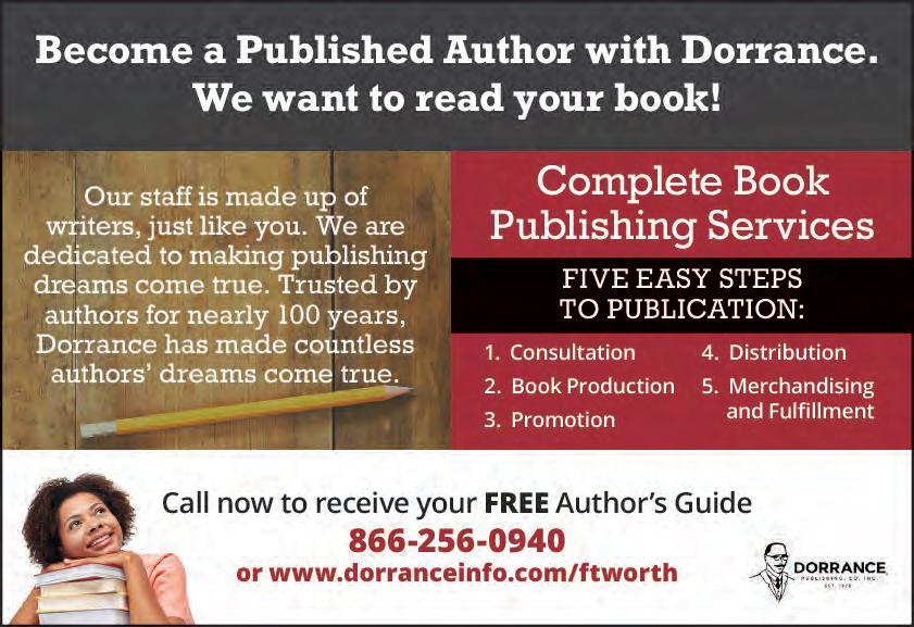 Dorrance Publishing, trusted by authors since 1920, is accepting submissions. Book manuscripts are currently being reviewed. Comprehensive services include consultation, production, promotion and distribution. Call 1-866-256-0940 or go online for your free author`s guide and become a published author. (MB) DorranceInfo.com/ftworth