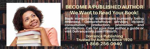 Dorrance Publishing, trusted by authors since 1920, wants to read your book! Book manuscript submissions currently being reviewed. Comprehensive Services: Consultation, Production, Promotion and Distribution. Visit DorranceInfo.com/FTWorth or call for your free Author’s Guide. (MB)