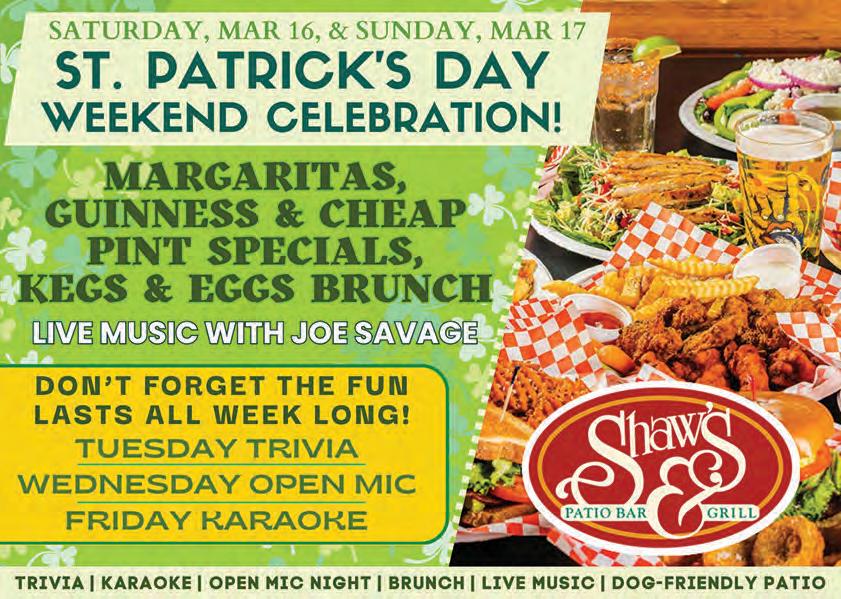 FORT WORTH WEEKLY MARCH 13-19, 2024 fwweekly.com 2 23RD ANNUAL FORTWORTHSTOCKYARDS.COM @STOCKYARDSSTATION @FWSYSTATION 131 E. EXCHANGE AVENUE FORT WORTH, TX 76164 © 2024 STOCKYARDS HERITAGE DEVELOPMENT CO. Cowtown Goes Green ™ PRESENTED BY SADDLE UP FOR GREAT FAMILY FUN Armadillo races, cow milking, Irish dancers, Irish music, rodeos, face painting and an exciting street parade! Saturday, March 16 10AM-8PM THANKS TO OUR PARTNERS PUBLIC IMPROVEMENT DISTRICT #11 FOR RODEO TICKETS VISIT COWTOWNCOLISEUM.COM | FOR EVENTS AND TIMES VISIT FORTWORTHSTOCKYARDS.COM JOB #: FWS-24074 CGG FW WEEKLY AD