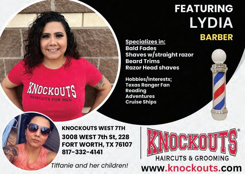 FORT WORTH WEEKLY MARCH 29-APRIL 4, 2023 fwweekly.com 24 682-301-1115 1156 COUNTRY CLUB LN. FORT WORTH, TX 76112 GIFT CERTIFICATES AVAILABLE MT 106812 OPEN MON-SAT SPECIALS: SWEDISH $40/HALF HR AND $80/HR A Massage You Won’t Soon Forget SWEDISH $40/HALF HR AND $80/HR JAPANESE STYLE 817-785-3515 328 HARWOOD RD. BEDFORD, TX 76021 CalmWaters DISCOUNT CODE: FWW Benefiting: hungryhoundhustle.org FORT WORTH 817-763-8622 Garland Dallas Plano PEACELOVE & SMOKE SINCE THEGASPIPE.NET4/20/1970 Chow Down, LIFT OFF!