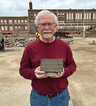 Amid the ruins, the Revercomb plaque remained on the wall’s east stairway column until the second day of dismantling.