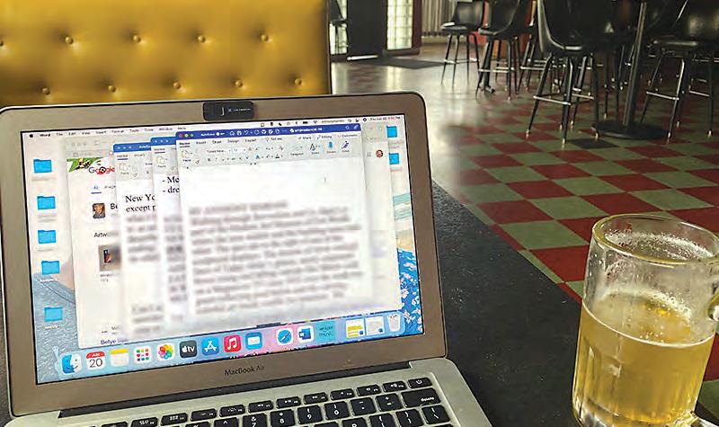 right above my head. Curling my lips, I moved to another high-top. The wintry weather followed me. And a third. At this point, I had accomplished maybe two or three emails and one read-through of my not-long story. This wasn’t doing it, either. I paid my tab, got back into Jovie, and, shoulders slumped, slunk back onto 35 headed toward home.