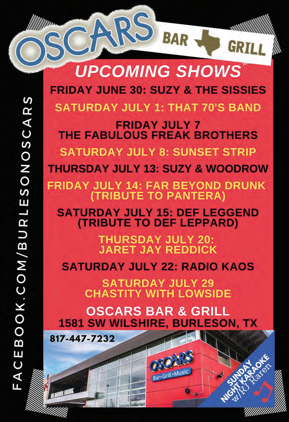 FORT WORTH WEEKLY JUNE 28JULY 4, 2023 fwweekly.com 5 BEERS, BULLS, BANDS, BRONCS AND BULLFIGHTS! JUNE 29–JULY 4 Presented by $4 SHINER DRAFTS & FREE FLAGS ON JULY 3 & 4! STOCKYARDS CHAMPIONSHIP RODEOS Featuring Running B Rodeo Junior Bull Riders on Saturday & Sunday FRIDAY 7:30PM, SATURDAY 1:30PM & SUNDAY 1:30PM “BULLFIGHTERS ONLY” COWTOWN SHOWDOWN II SATURDAY 8:00PM PBR STOCKYARDS SHOWCASE THURSDAY 7:30PM ON STAGE Monty Dawson Band Salt Creek DJ Luv Cowtown Opry Proud Country FREE KOOZIE WHEN YOU JOIN STOCKYARDS HERITAGE CLUB! Drafts & flags available while supplies last. FORTWORTHSTOCKYARDS.COM @STOCKYARDSSTATION @FWSYSTATION 131 E EXCHANGE AVENUE FORT WORTH, TEXAS 76164 © 2023 STOCKYARDS HERITAGE DEVELOPMENT CO. NEW BIG SCREENS & THUNDERING AUDIO! JOB #: FWS-21726 FW WEEKLY RWB AD Great seats available at CowtownColiseum.com