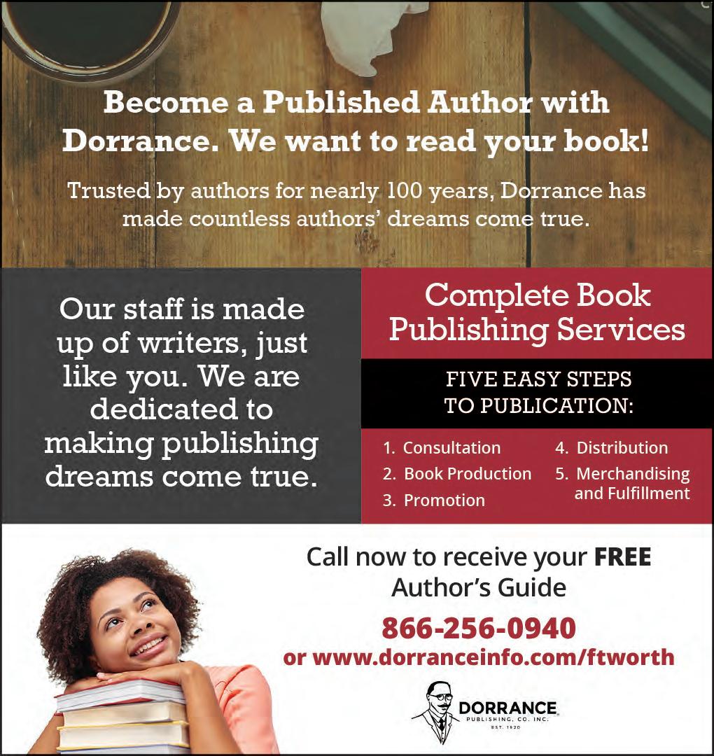 Book manuscript submissions currently being reviewed. Comprehensive services include consultation, production, promotion and distribution. Call for your FREE Author`s Guide or visit DorranceInfo.com/FTWorth today. 1-866-256-0940