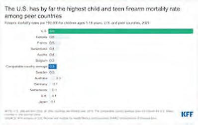 “We find that the United States is alone among peer nations in the number of child and teen firearm deaths,” Kaiser found, based on CDC data. “In no other similarly large or wealthy country are firearm deaths in the Top 4 causes of mortality let alone the No. 1 cause of death among children and teens.”