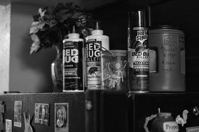 there, too. One resident puts strips of scotch tape over her electrical outlets to keep the bedbugs out. Every so often she changes the tape, which usually has at least one or two dead bugs stuck to it.