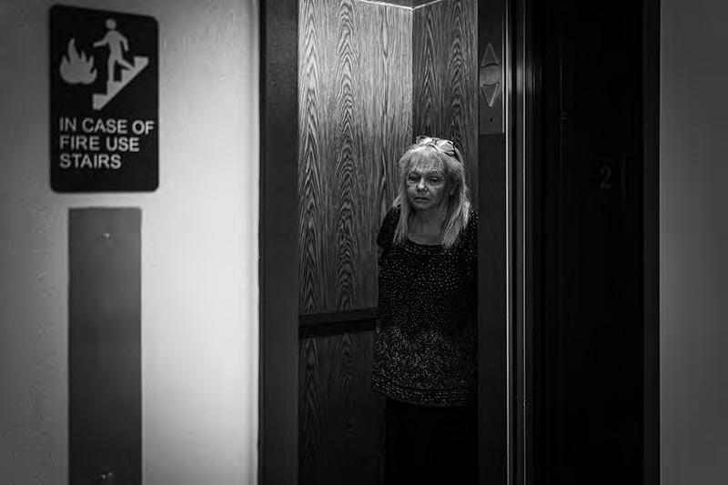 All of Fair Oaks’ residents have button-shaped key fobs that will open the front door, and, in years past, the same key would open all of the back and stairwell doors too. Recently, these exterior doors have been locked, allowing the residents to exit but not reenter. Since there are only 16 parking spaces in the front of a complex that contains more than 70 units, most of the senior and disabled residents are forced to park behind the building and walk around to the front.