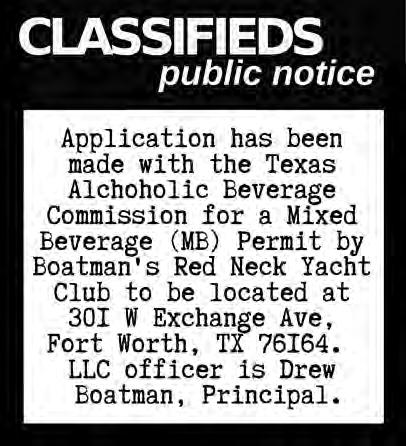FORT WORTH WEEKLY JULY 19-25, 2023 fwweekly.com 27 CLASSIFIEDS employment public notices / services CLASSIFIEDS bulletin board