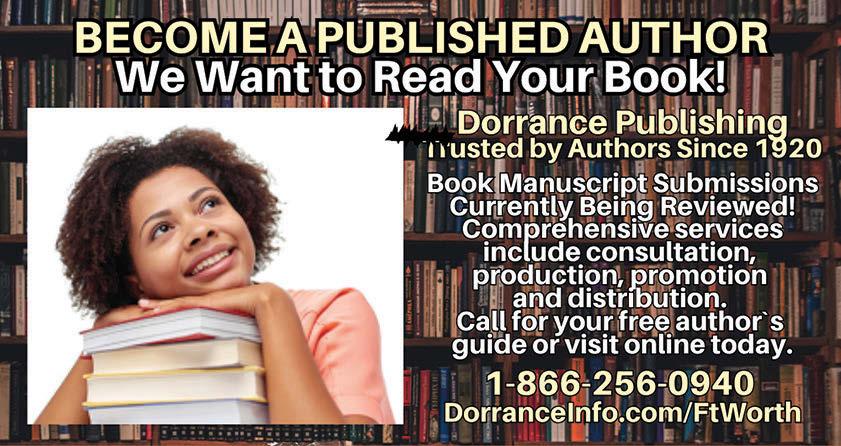 DORRANCE PUBLISHING Book manuscript submissions are currently being reviewed. Comprehensive services include consultation, production, promotion, and distribution. Call for your FREE Author`s Guide or visit DorranceInfo.com/ FTWorth today. 1-866-256-0940.