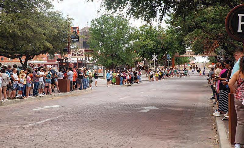 Hundreds of tourists line East Exchange Avenue in anticipation of the twice-daily cattle drive.