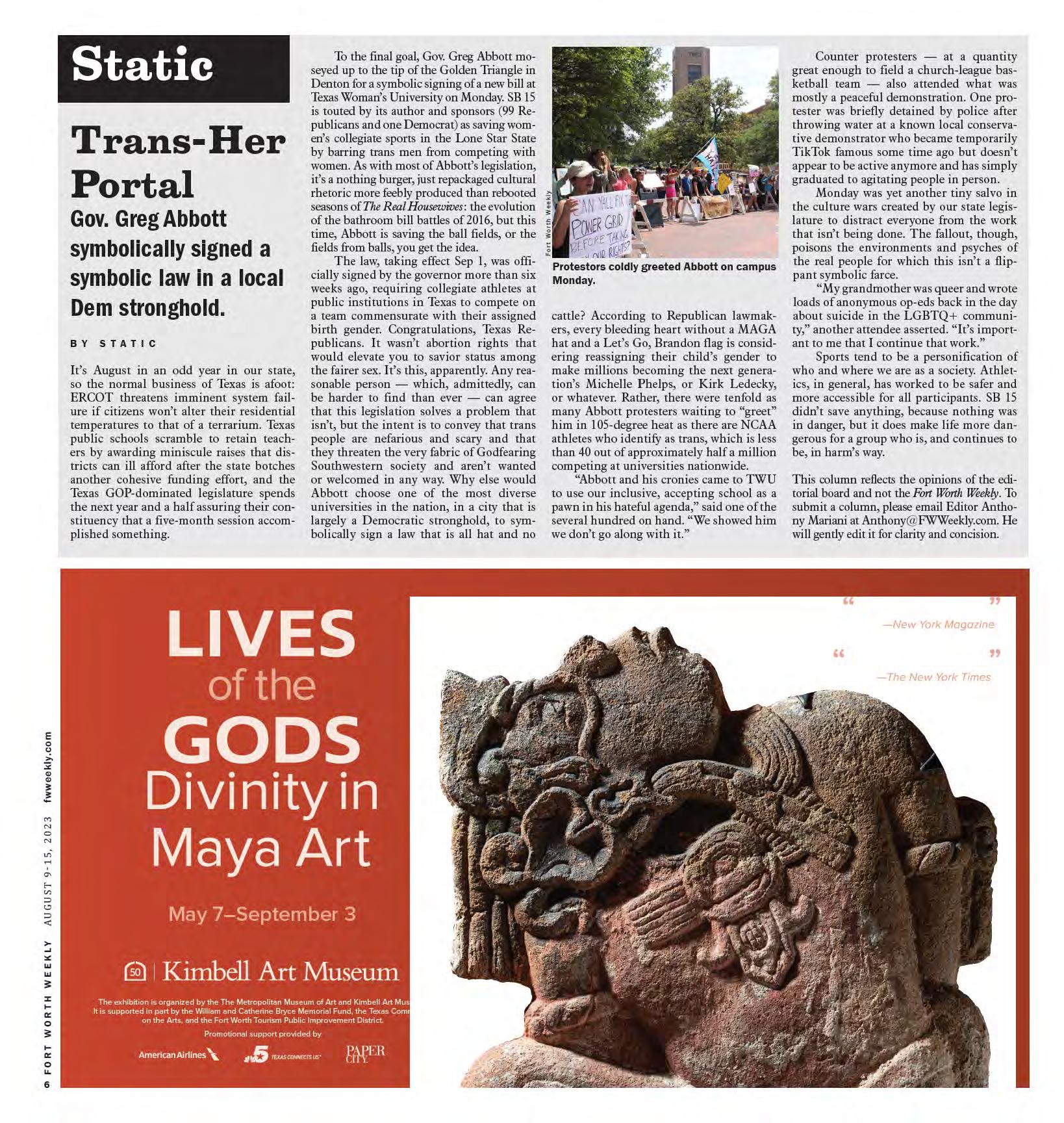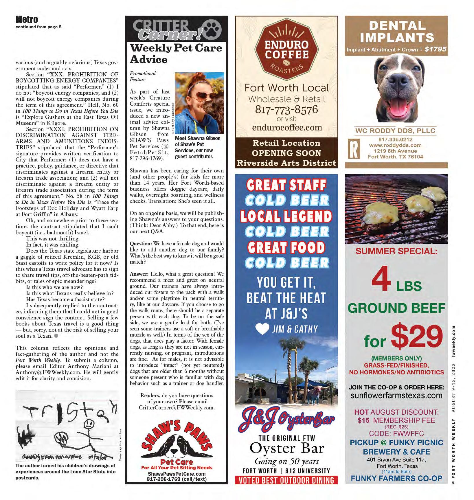 This column reflects the opinions of the editorial board and not the Fort Worth Weekly. To submit a column, please email Editor Anthony Mariani at Anthony@FWWeekly. com. He will gently edit it for clarity and concision.