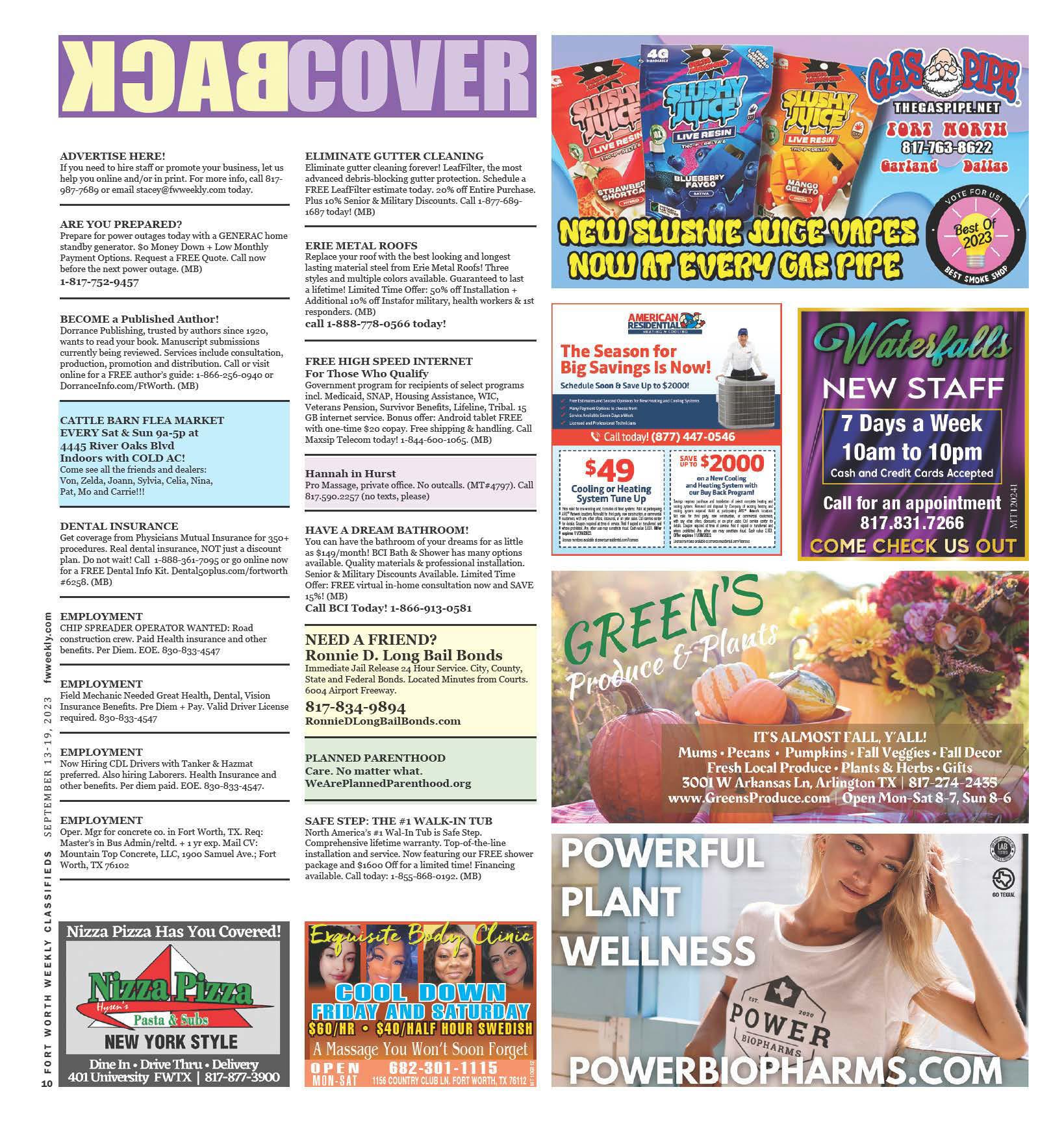 Fort Worth Weekly Classifieds // September 13-19, 2023