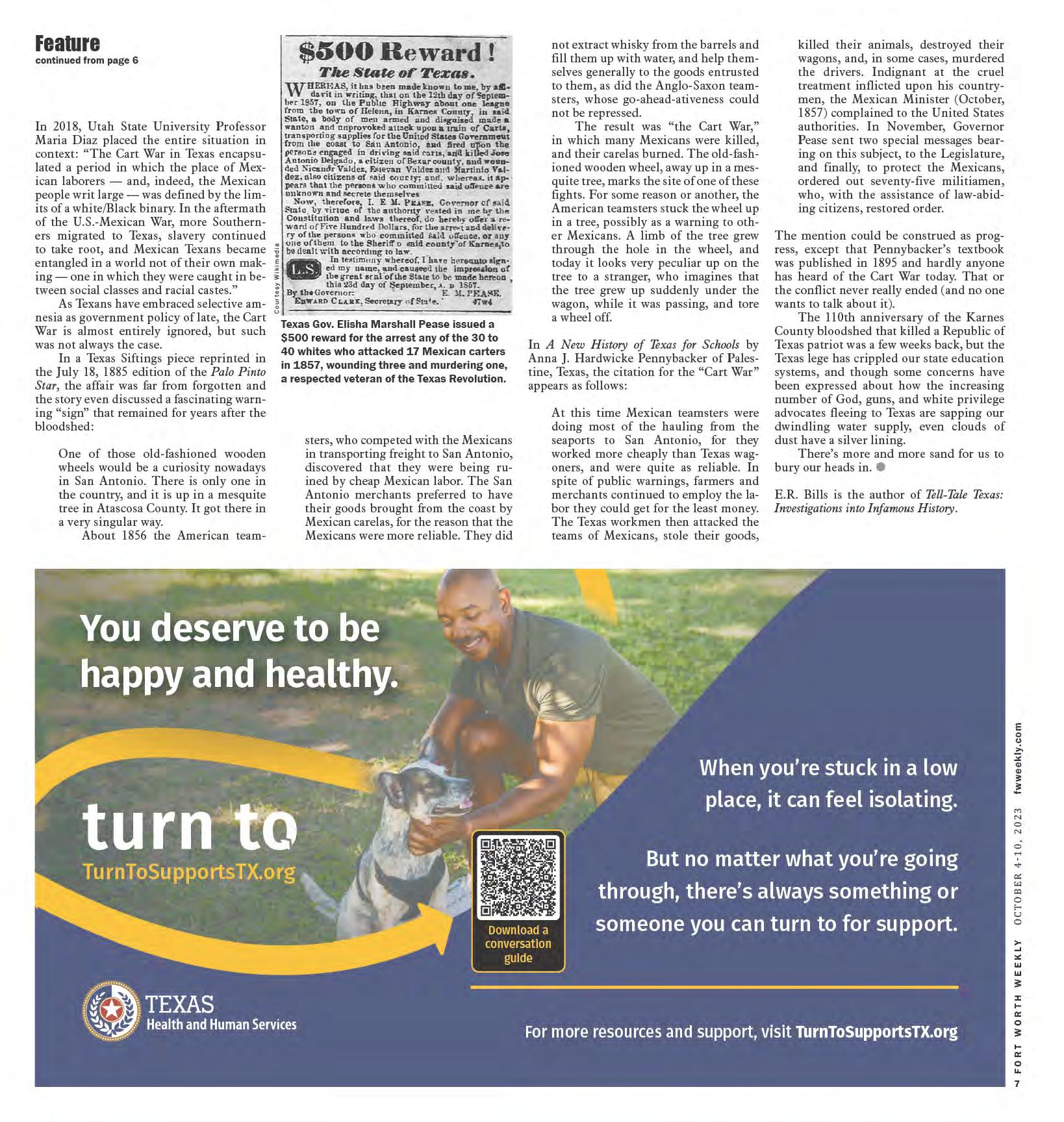 The local authorities made no serious effort to apprehend the perpetrators of violence against the Mexican-American and Mexican teamsters, much less punish them for their transgressions. And the Sept. 24, 1857 edition of the San Antonio Texan wasn’t having it: