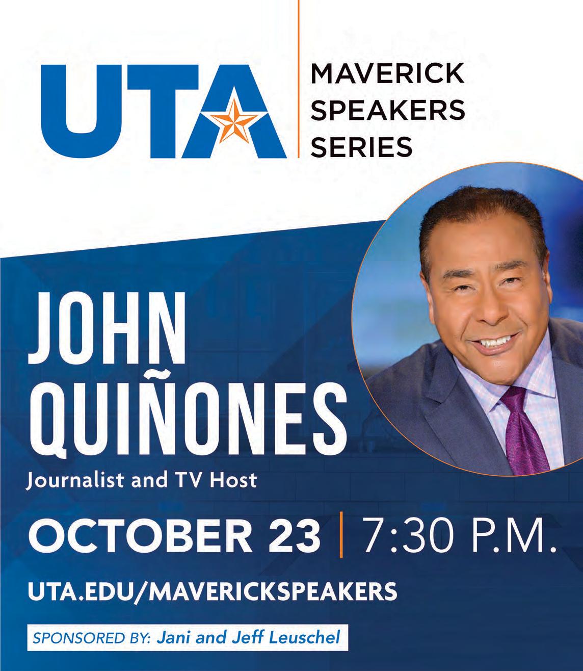 UTA is kicking off its 2024-2025 Maverick Speakers Series with journalist and TV host John Quiñones next Wednesday.
