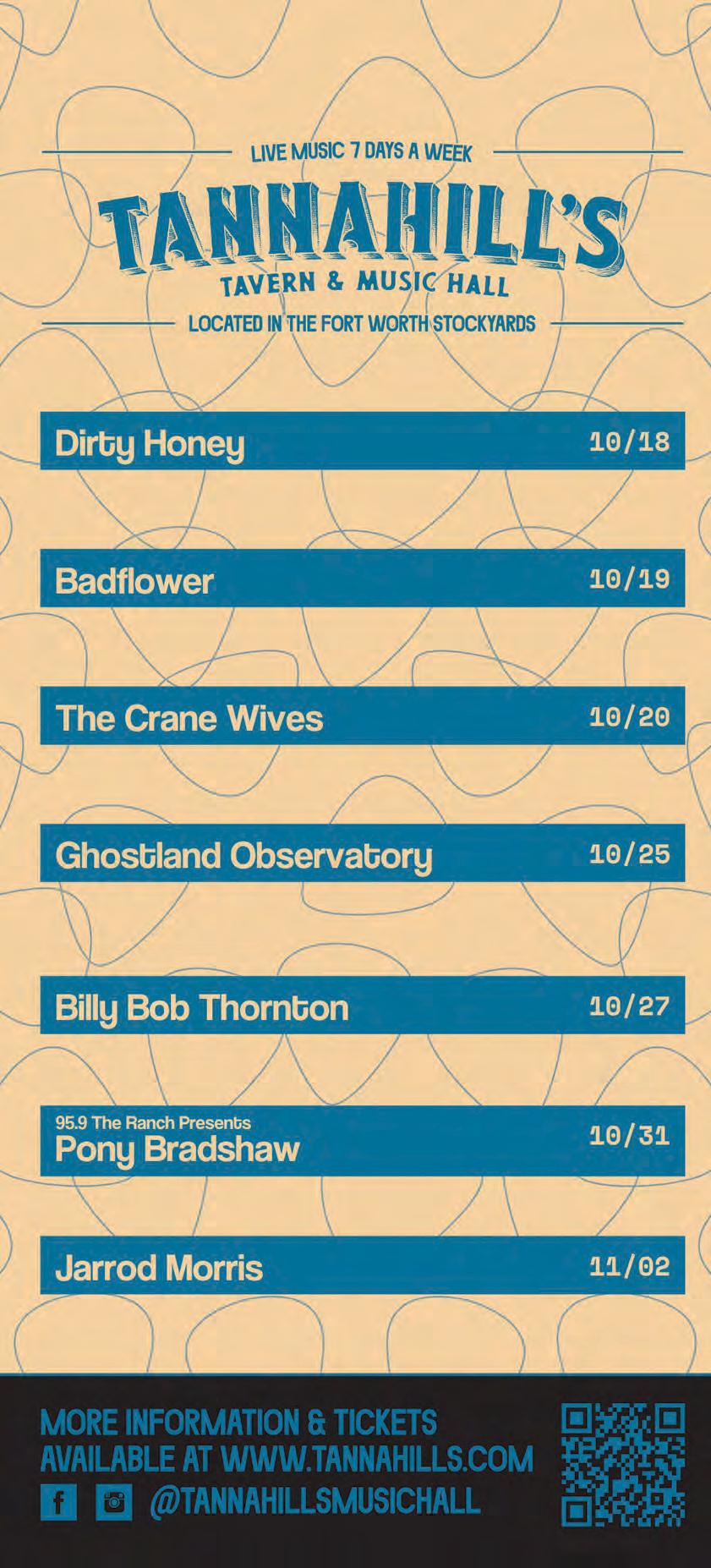 Broke String Burnett has also been awarded a travel grant from Hear Fort Worth that will support the band’s eight-day Midwest tour in November. At Tulips, Sam Morrow and J. Isaiah Evans & The Boss Tweed will open the show. Tickets are $2035. — Juan R. Govea