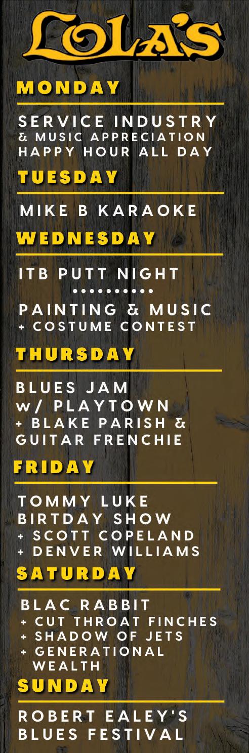 Along with the jam nights at Lazy Daisy Coffee Bar, Lola’s Fort Worth with Playtown, McFly’s Pub, and Pinky’s Champagne Room & Vel vet Jazz Lounge, the Black Dog Jam at Scat Jazz Lounge (111 W 4th St, Ste 11, 817-870-9100) is nominated for best openmic at FWWeekly.com/music-awards-bal lot-2022. Check out the Black Dog Jam every Sunday at 8pm. The Scat says, “It’s one of Fort Worth’s longest-running weekly shows for a reason.” No cover.