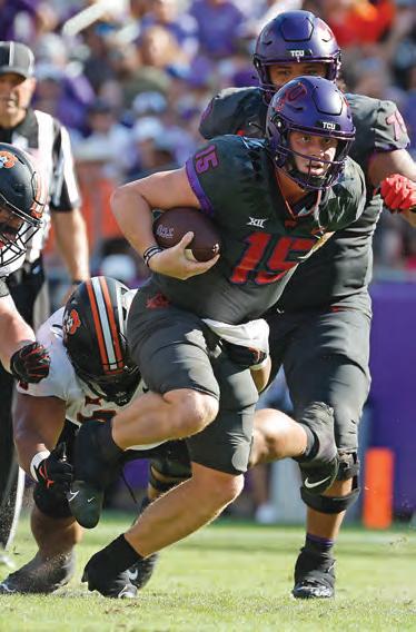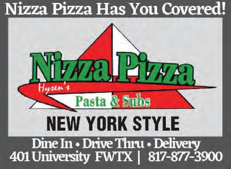FORT WORTH WEEKLY OCTOBER 19-25, 2022 fwweekly.com 3 INSIDE 4 Metro 6 Feature 10 Buck U 11 Stuff 12 Screen 13 N&D STAFF Anthony Mariani, Editor Lee Newquist, Publisher Bob Niehoff, General Manager Ryan Burger, Art Director Jim Erickson, Circulation Director Edward Brown, Staff Writer Emmy Smith, Proofreader Michael Newquist, Regional Sales Director Jennifer Bovee, Marketing Director Stacey Hammons, Senior Account Executive Julie Strehl, Account Executive Tony Diaz, Account Executive Wyatt Newquist, Digital Coordinator Clintastic, Brand Ambassador DISTRIBUTION Fort Worth Weekly is available free of charge in the Metroplex, limited to one copy per reader. Additional copies of Fort Worth Weekly may be purchased for $1.00 each, payable at the Fort Worth Weekly office in advance. Fort Worth Weekly may be distributed only by Fort Worth Weekly’s authorized independent contractors or Fort Worth Weekly’s autho rized distributors. No person may, without prior written permission of Fort Worth Weekly, take more than one copy of any Fort Worth Weekly issue. If you’re interested in being a dis tribution point for Fort Worth Weekly, please contact Will Turner at 817-321-9788. COPYRIGHT The entire contents of Fort Worth Weekly are Copyright 2022 by Ft. Worth Weekly, LP. No portion may be reproduced in whole or in part by any means, including electronic retrieval systems, without the express written permission of the publisher. Please call the Fort Worth Weekly office for back-issue information. Fort Worth Weekly mailing address: 300 Bailey, Ste 205, Fort Worth TX 76107 Street address: 300 Bailey, Ste 205, Fort Worth TX 76107 For general information: 817-321-9700 For retail advertising: 817-321-9719 For classifieds: 817-987-7689 For national advertising: 817-243-2250 website: www.fwweekly.com email: question@fwweekly.com Volume 18 Nu mber 27 Oct ober 19-25, 2022 CONTRIBUTORS Megan Ables, Christina Berger, E.R. Bills, Jason Brimmer, Sue Chefington, Buck D. Elliott, Juan R. Govea, Patrick Higgins, Bo Jacksboro, Laurie James, Kristian Lin, Vishal Malhotra, Cody Neathery, Wyatt Newquist, Linda Blackwell Simmons, Madison Simmons, Teri Webster, Ken Wheatcroft-Pardue, Cole Williams EDITORIAL BOARD Anthony Mariani, Edward Brown, Emmy Smith Cover image courtesy TCU Athletics 16 Eats & Drinks ADW ........... 15 19 Music 23 Big Ticket 23 Classifieds Backpage ...... 24 23 10 6 WINNERS’ CIRCLE SEE PAGES 14-15