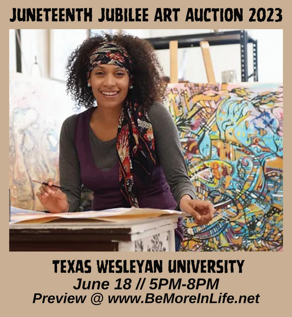 At 2pm, Texas Wesleyan University (3165 E Rosedale St, Fort Worth, 817-531-4444) hosts the second annual Juneteenth Jubilee. This free event will feature African dancers, a bounce house, a fashion show, and local food/market vendors, plus a live art auction. Now thru Sunday, preview the featured pieces of the Second Annual Juneteenth Art Auction via BeMoreinLife.net. The art we’ve featured here, as well as works by various artists, will be available for purchase.