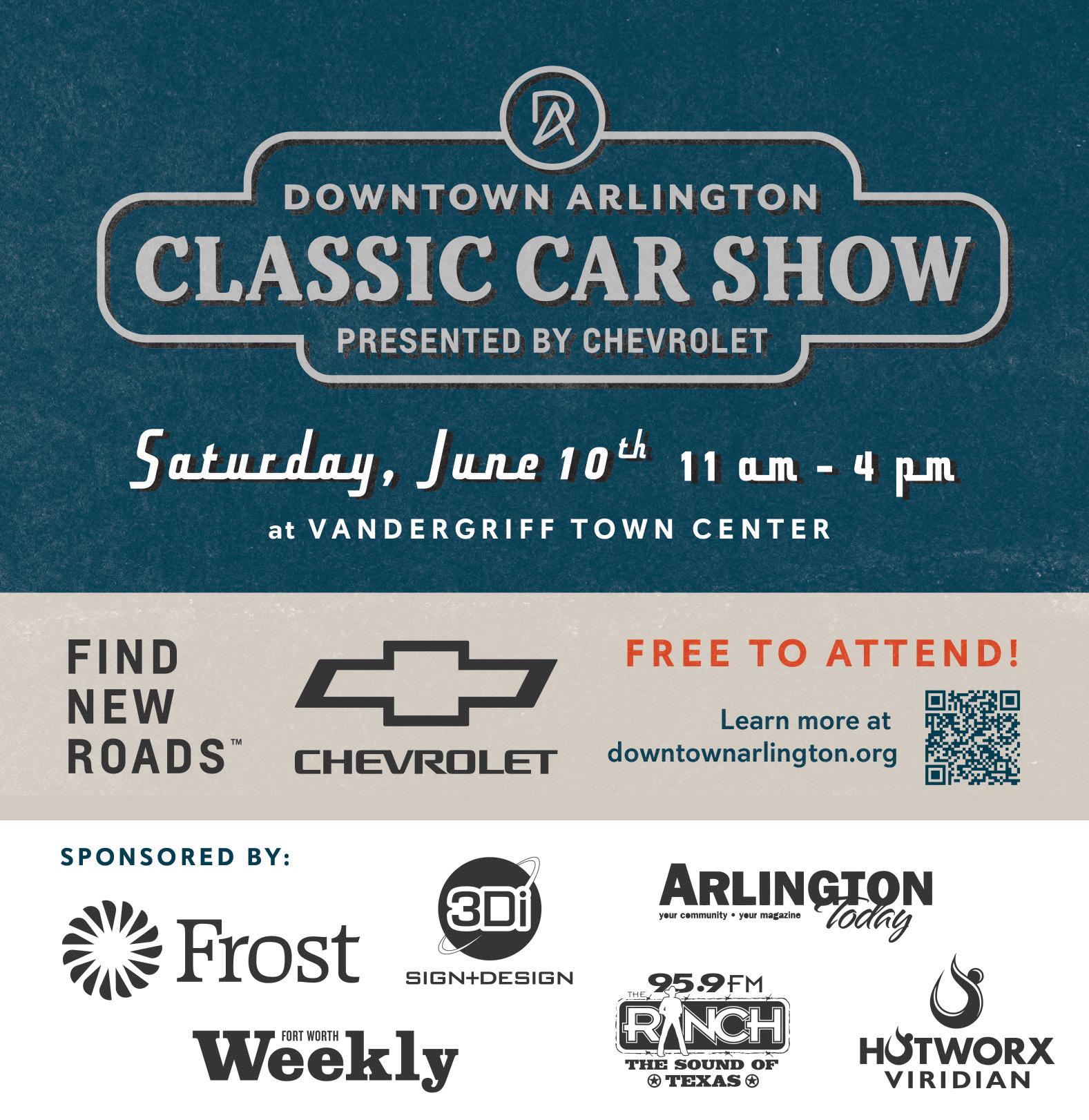 Presented by Chevrolet, the Downtown Arlington Classic Car Show is 11am-4pm Sat, June 10, at Vandergriff Town Center (200 N Mesquite St) and on surrounding streets. More than 150 cars from the early 1920s to the late 1970s will be showcased. You can register your car for $20 on Eventbrite.com, with proceeds going toward creating a Fire Station Museum. Along with the cars, you can enjoy food trucks, games, and vendors. This event is free to attend.