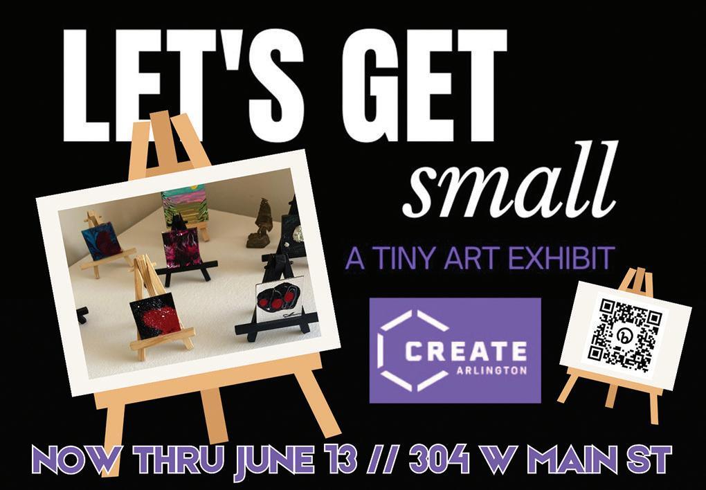The Let’s Get Small exhibit at Create Arlington (304 W Main St, 682-248-8424) offers a look into the world of miniature art (no larger than 8” in size)