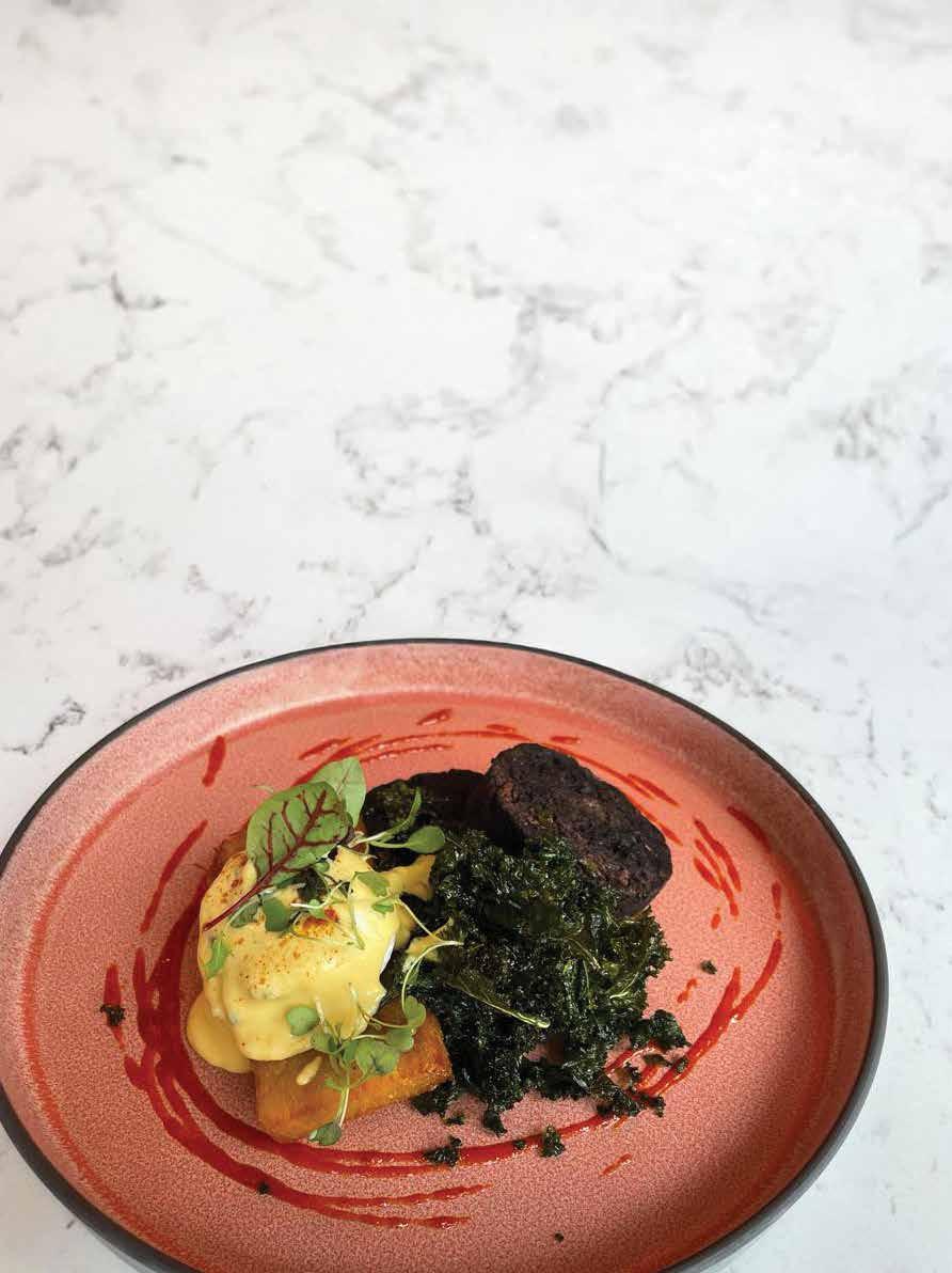 Black pudding hash with egg and Sriracha sauce